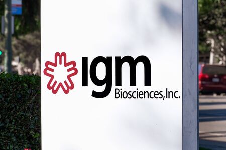 Sep 14, 2019 Mountain View / CA / USA - IGM Biosciences logo at their offices in Silicon Valley; IGM Biosciences, Inc is a biotechnology company that is focused on developing IgM and IgA antibodies