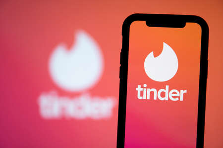LONDON, UK - April 29 2020: Tinder online dating app logo on a smartphone