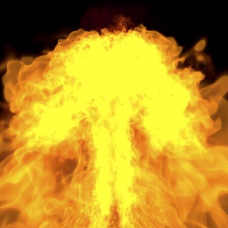 Hot fire explosion with fantastic thick smoke on dark background for graphic design. abstract backdrop. glow effect. 3d rendering digital illustration
