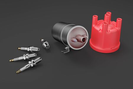 Igniter coil, Ignition and glowplug system. Igniter coil on dark background. 3d rendering