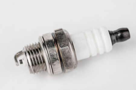 Spark plug replacement. Close up old spark plug, car maintenance concept.