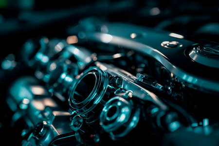 A detailed view of precision-machined metallic parts, capturing the essence of engineering excellence and innovative automotive design.