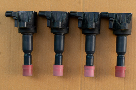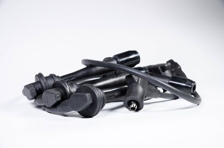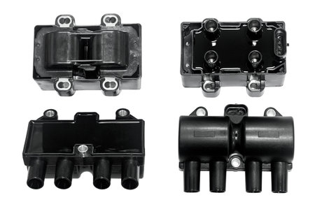 Set of New Car Ignition Coil Placed Over Pure White Background.Vertical Image Orientation