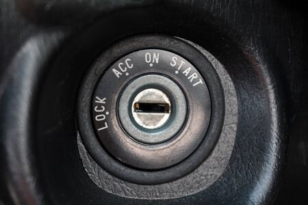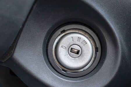 Engine start key hole, ignition lock of a modern car.