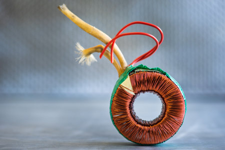 Electrical Copper Coil Transformer on Metal Surface
