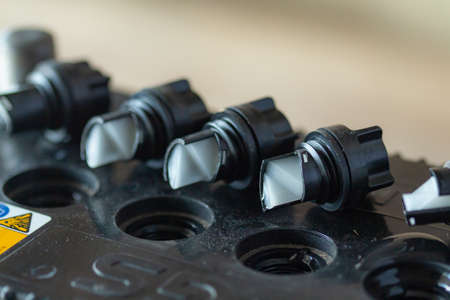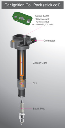 Set of New Car Ignition Coil Placed Over Pure White Background.Vertical Image Orientation