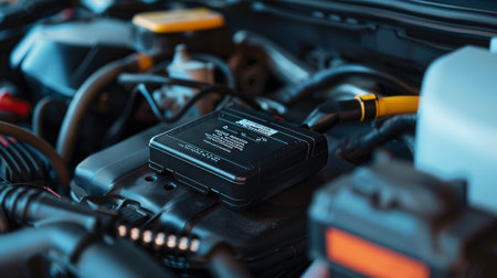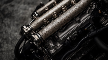 A striking close-up image of an automotive engine showcasing textured valve covers and intricate mechanical details, ideal for technology and automotive themes.