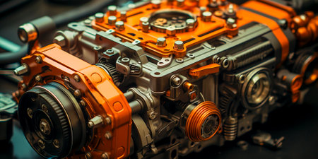 A stunning close-up image showcasing a modern engine with sleek metallic components, showcasing intricate details that highlight automotive innovation and performance.