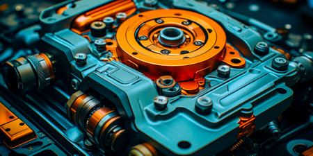 A detailed view of precision-machined metallic parts, capturing the essence of engineering excellence and innovative automotive design.