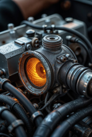 During a tuning session in a workshop, an engine's components emit bright sparks as adjustments are made. This showcases the intricate mechanics and sparks of creativity involved in engine refinement.