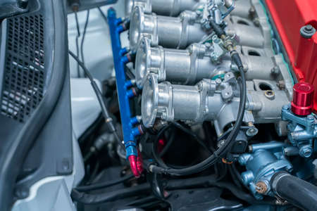 Belgorod , Russia - AUG, 18, 2018: Turbo charger on race car engine.