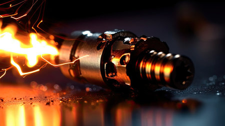 Close-up of sparks flying from an exposed wire, capturing the moment of electrical discharge in vivid, high-energy detail