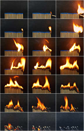 A series of matches are next to each other, which burn one after another