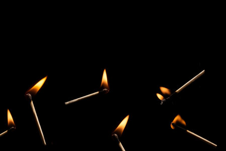 burning matches on the dark wall background