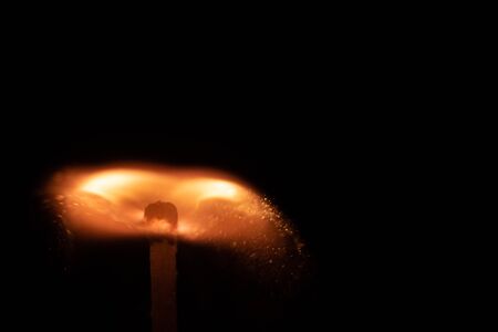 Flash of flame on a match. Close-up. Macro photography.