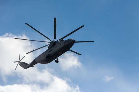 S-Petersburg, Russia - May 9, 2017: Mi-26 (codification NATO: Halo) is Soviet heavy multi-purpose transport helicopter. World's largest transport helicopter. Used in army and in emergency situations