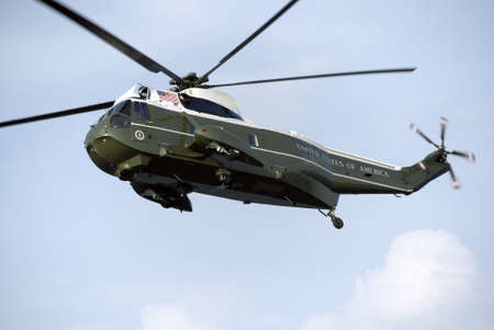 Helicopter was seen flying in the sky in Washington D.C., USA. It was flying near the White House. The White House is the residence and workplace of the current US President.