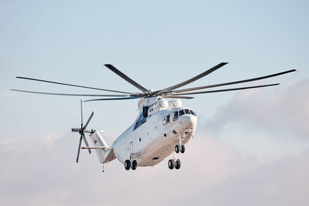 Moscow Region - July 21, 2017: Russian heavy transport helicopter Mil Mi-26 at the International Aviation and Space Salon (MAKS) in Zhukovsky. it is the largest and most powerful helicopter in the world.
