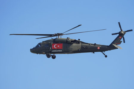 ISTANBUL, TURKIYE - APRIL 30, 2023: Turkish Jandarma Force Sikorsky S-70 displayed at Istanbul Ataturk Airport during Teknofest Istanbul