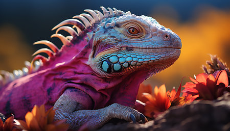 Iguana basking under the warm divine light its scales reflecting heavenly rainbows