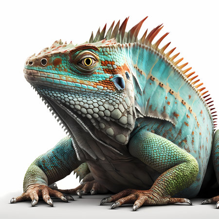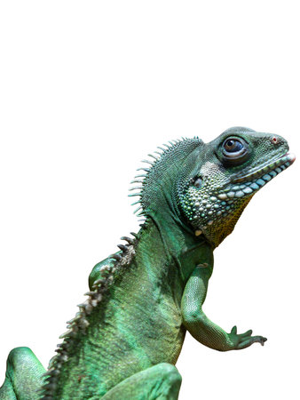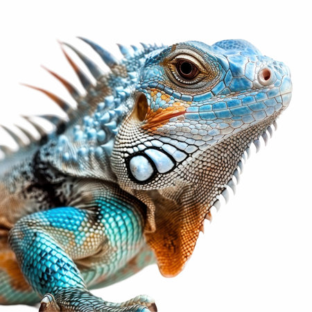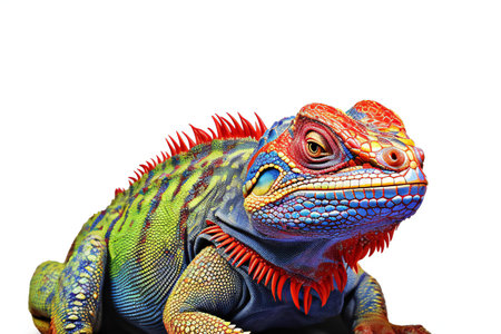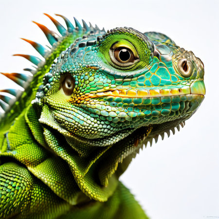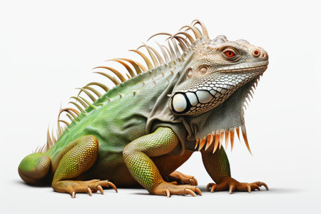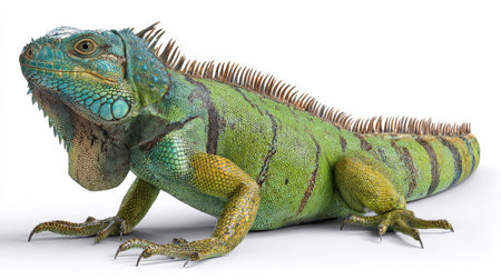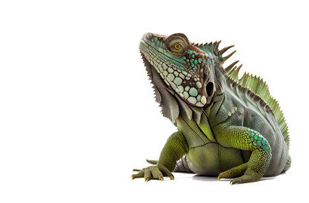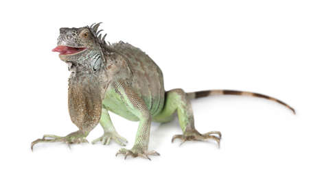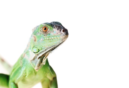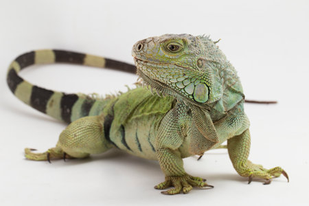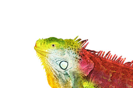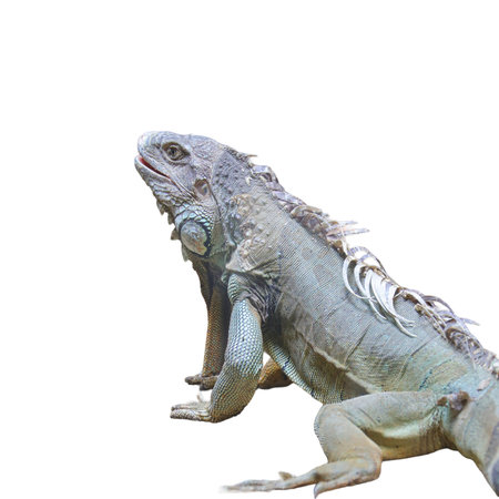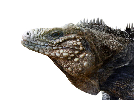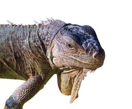 Close-up portrait of a male Green iguana (Iguana iguana) isolated on white.