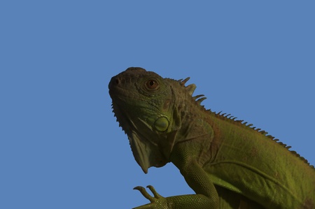 Close up portrait of the green iguana (Iguana iguana), also known as common iguana or American iguana