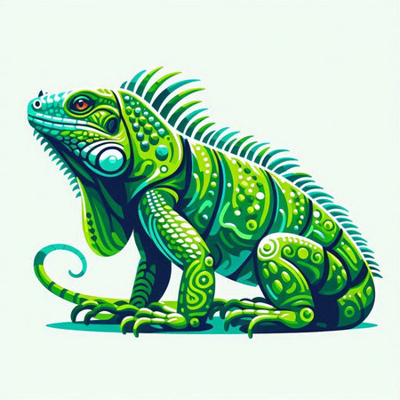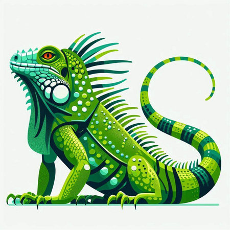 Green iguana isolated on white background. Vector illustration. Eps 10.