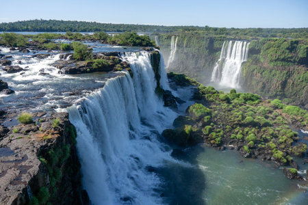 Iguazu waterfalls on a sunny day in summer. Photo at Argentinian, Devil throat