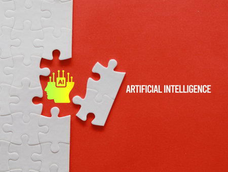 Jigsaw puzzle with text ARTIFICIAL INTELLIGENCE, business concept