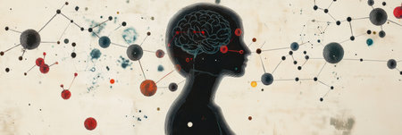 A silhouette of a human figure surrounded by colorful molecular diagrams, symbolizing the connection between biology and the mind.
