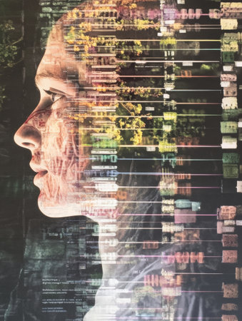 A human silhouette overlaid with vibrant DNA symbols illustrates the connection between genetics and identity in a profound manner.