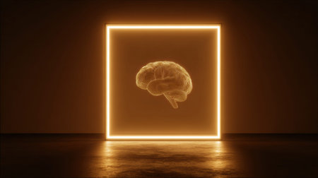 A transparent human head illuminates from within, revealing a complex and glowing neural network.