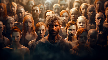 Group of people standing together in front of crowd of other people. Generative AI.