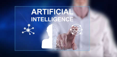 Man touching an artificial intelligence concept on a touch screen with his finger
