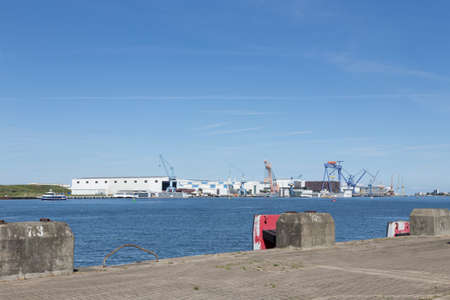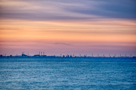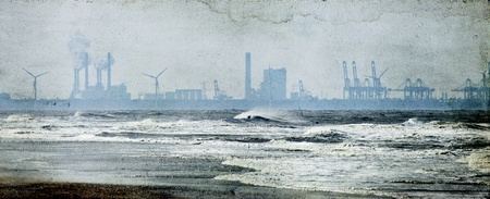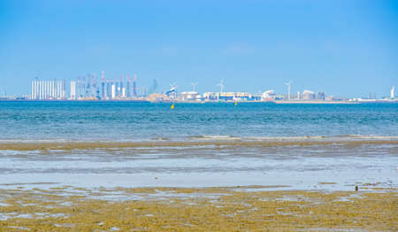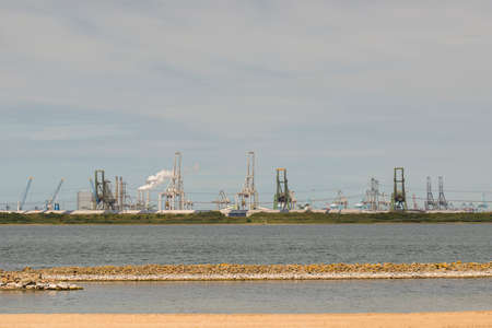 view on the industrial zone of vlissingen from Breskens beach, Zeeland, The Netherlands