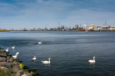 View on 'Het Oostvoornse Meer' at the Maasvlakte near Rotterdam, the Netherlands, with heavy industry in the background