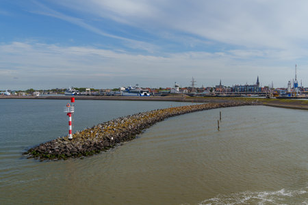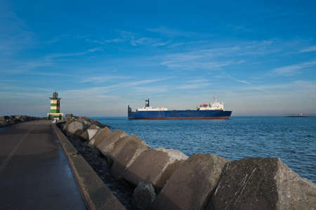 Big ship leaving the harbor of IJmuiden, The Netherlands