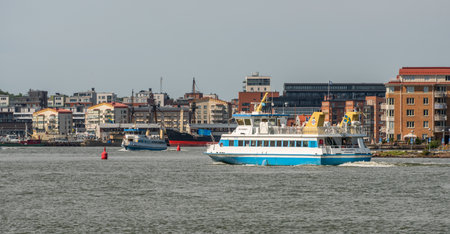 Gothenburg, Sweden - August 06 2020: Ferries Älvsnabben 3 and Älvsnabben 5 between stops at Hisingen