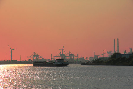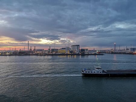 Vlaardingen, The Netherlands - Nov 6th, 2018 : Petroleum industrial port at Het Scheur river when sunset, Vlaardingen.