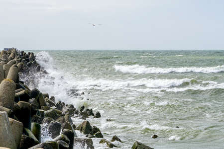 Concrete blocks form the jetty of the harbor of Scheveningen in the Netherlands