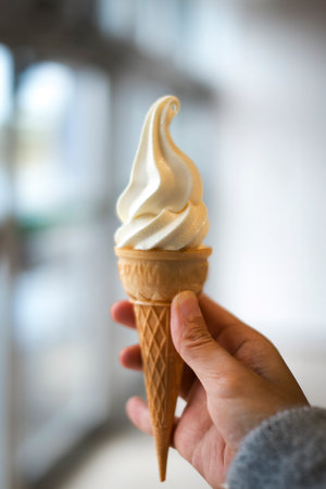 Hand holding ice cream close-up. Generative AI