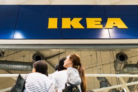 BANGKOK - JULY 27, 2014: Logo IKEA Mega Bangna shopping BANGKOK,THAILAND.the Swedish IKEA is the world's largest furniture retailer.