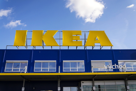 PRAGUE, CZECH REPUBLIC - FEBRUARY 25: IKEA furniture company logo on building exterior on February 25, 2017 in Prague, Czech republic.