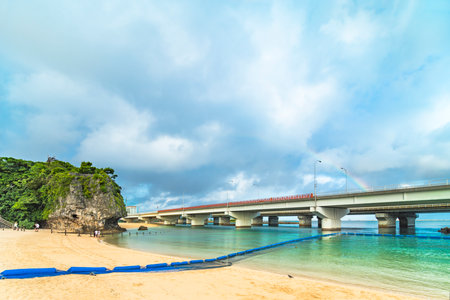 Okinawa, Japan-July 7, 2018: Irabu bridge, the longest toll-free bridge in Japan connecting Irabu island and Miyako island