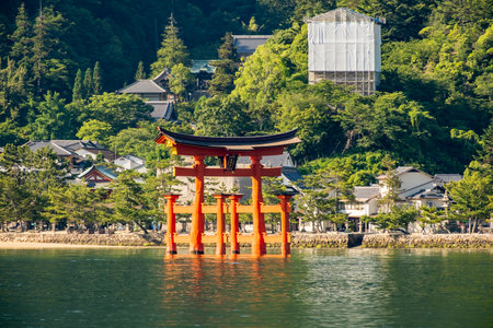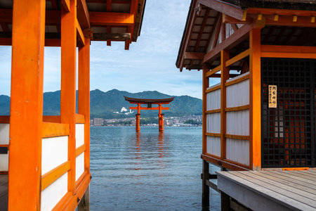 Hiroshima,Japan - July 26,2018 - Miyajima is a small island of Hiroshima in Japan. It is most famous for its giant torii gate, which at high tide seems to float on the water.