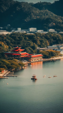 Generative AI : Aerial view of the Otonashijinja Shrine Torii Kochi Shikoku Japan