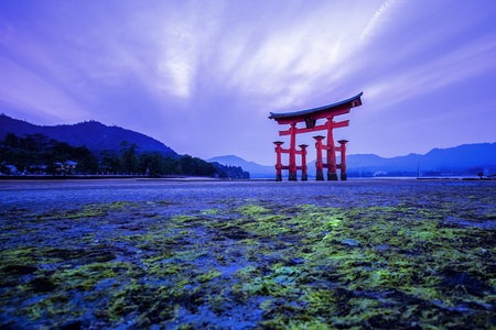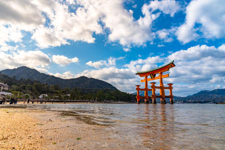 The Floating Torii gate of Itsukushima Shrine in Miyajima island, Hiroshima, Japan.
