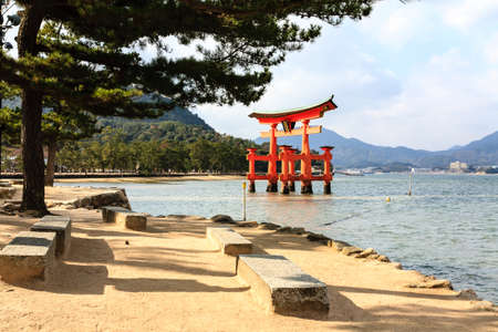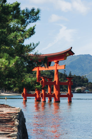 Tori. Miyajima, Island, Japan, Floating Torii. Famous Torii in Itsukushima Shrine.