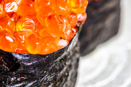 Ikura sushi , ikura with seaweed Nori, japanese cuisine,Salmon roe