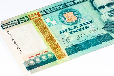 10000 intis bank note. Inti is the former currency of Peru